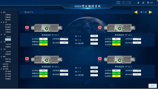 送排風(fēng)系統(tǒng) | (1)對(duì)建筑內(nèi)的送風(fēng)、排風(fēng)系統(tǒng)均實(shí)施統(tǒng)一管理 (2)送排風(fēng)機(jī)監(jiān)控:采用定時(shí)程序控制,累計(jì)運(yùn)行時(shí)間 (3)實(shí)施啟??刂?、運(yùn)行狀態(tài)、故障報(bào)警、消防聯(lián)動(dòng)以及投入運(yùn)行臺(tái)數(shù)的監(jiān)控 |